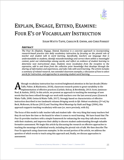 Texas Journal of Literacy Education is the official journal of the Texas Association for Literacy Education (TALE), the Texas affiliate of the International Literacy Association. TJLE is a peer-reviewed journal published twice each year, in July and December. We seek original research and practitioner articles related to language and literacy practices, from early childhood through adult, inside and outside of the classroom. We welcome all voices from literacy researchers, classroom teachers, and graduate students.